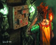 "Vajon mire gondolhatott e feladvány tervezője? Ha a vörös gombokat választom, talán megtalálom megbízómnak, a szint helytartójának elrabolt fülbevalóját... De ha a kék gombok kombinációval kísérleteznék, a kevesebb lehetőség miatt nagyobb esélyem lenne a túlélésre..." - hosszantartó töprengés egy kaland intelligenciapróbája előtt