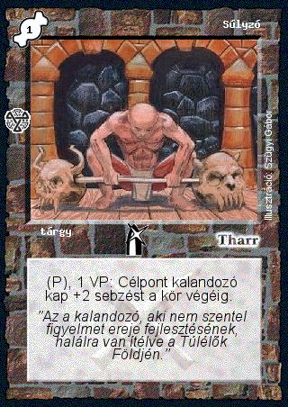 Kiadás: Isteni szövetség Gyakoriság: nem gyakori Lapszín (isten): Tharr Típus: tárgy Szöveg: (P), 1 VP: Célpont kalandozó kap +2 sebzést a kör végéig. Szinesítő szöveg: "Az a kalandozó, aki nem szentel figyelmet ereje fejlesztésének, halálra van ítélve a Túlélők Földjén." Illusztráció: