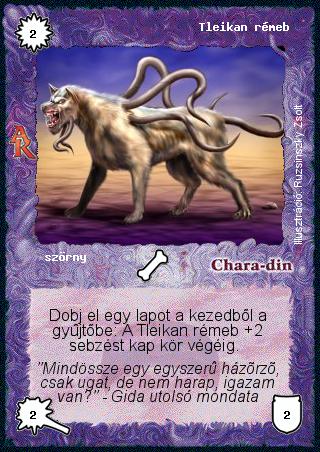 Szöveg: Dobj el egy lapot a kezedből a gyűjtőbe: A Tleikan rémeb +2 sebzést kap kör végéig.