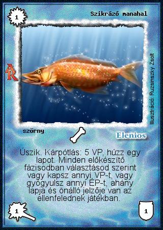 Szöveg: Úszik. Kárpótlás: 5 VP, húzz egy lapot. Minden előkészítő fázisodban választásod szerint vagy kapsz annyi VP-t, vagy gyógyulsz annyi ÉP-t, ahány lapja és önálló jelzője van az ellenfelednek játékban.
