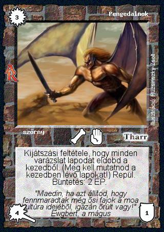 Kiadás: Alanori Krónika Gyakoriság: ritka Lapszín (isten): Tharr Típus: szörny Szöveg: Kijátszási feltétele, hogy minden varázslat lapodat eldobd a kezedből. (Meg kell mutatnod a kezedben lévő lapokat!) Repül. Büntetés: 2 ÉP. Szinesítő szöveg: "Maedin, ha azt állítod, hogy fennmaradtak még ősi fajok a moa kultúra idejéből, igazán őrült vagy!" - Ewgbert, a mágus Illusztráció: Ruzsinszki Zsolt
