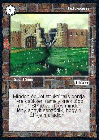 Szöveg: Minden épület struktúrális pontja 1-re csökken (amelyiknek több mint 1 SP-je van), és minden lény annyit sebződik, hogy 1 ÉP-je maradjon.
