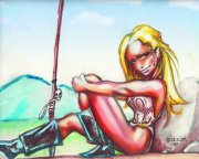 A Túlélők Földje talán egyik legbájosabb elf kalandozóhölgye pózol ezen a képen. A festmény még azokból az időkből származik, amikor sokkal vidámabb volt a világ. Az életbenmaradásért folyó mindennapok alaposan elűzték ezeket az idilli perceket.