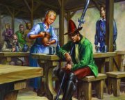 A ta'veren és szerencsefia Matt Cauthon, a Vörös Kéz bandájának vezetője a fogadóban pihenve figyeli embereit és a felszolgáló lányokat.