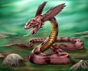 "Ez a jókora méretűre megnőtt óriáskígyó nevét a feje hátulján, tarajszerűen ékeskedő tollakról kapta. Iszonyatos méretei láttán még a legmegtermettebb troll is sikoltva kezd menekülésbe, de még így is kétséges, túléli-e a vele való találkozást. A tollaskígyó ugyanis nagyon gyors." - részlet az Encyclopedia Fantasiából